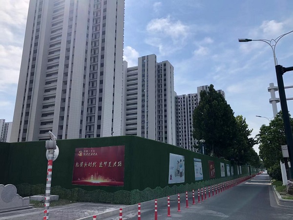 各建筑工地按照文明施工要求,实行封闭围挡作业,并在施工围挡上设置文明宣传标语,施工现场各类建筑材料分类整齐堆放,道路硬化和裸土覆盖率达到100%。同时,开展安全文明施工专项整治活动,针对建筑施工领域存在的突出问题和薄弱环节,强化安全生产隐患排查,督促各类隐患及时得到整改,全面落实安全文明施工要求。
